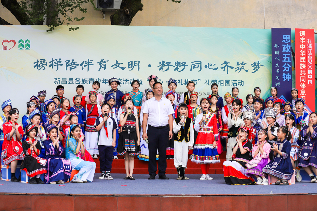 9月23日,由新昌县委宣传部,新昌县委统战部,新昌县教体局主办,新昌县羽林街道承办,新昌县拔茅小学协办的“榜样陪伴育文明·籽籽同心齐筑梦”新昌县各族青少年交流活动暨“同心·林礼集市”礼赞祖国活动在拔茅小学热闹开场,吸引了800多名各族青少年、教师及志愿者共同参与,现场洋溢着民族团结、礼赞祖国的浓厚氛围。