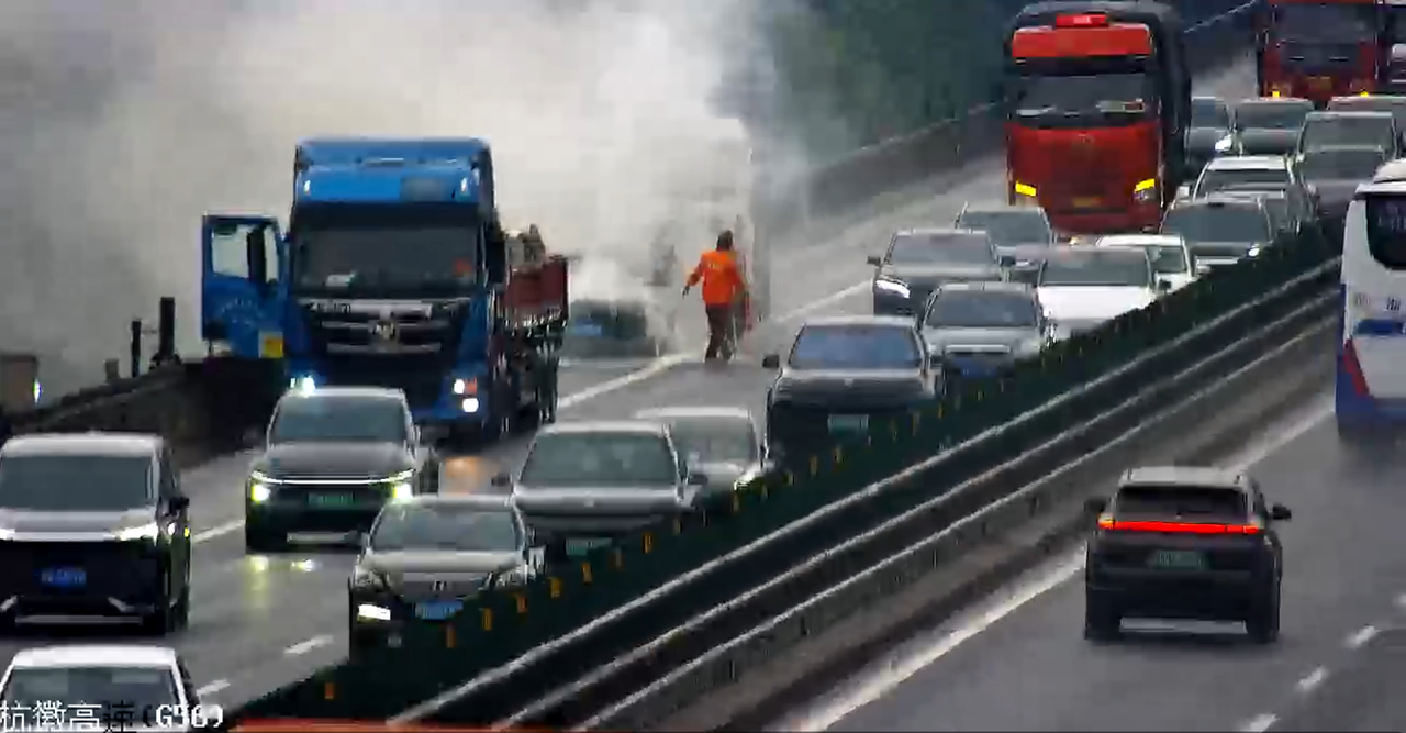 浙A9P395、浙A2K5S1、浙ADM9439等更多车辆停了下来,大家拎着灭火器跑去,有的还拎着水桶。