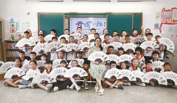 在开学第一课上,她给同学们带来了“专属扇”,每一把团扇都由她亲笔题写,墨香中传递着期许与祝福。